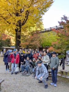 午後から紅葉の名所、香嵐渓を散策。Bさんは、「(坂道や未舗装の道を)
