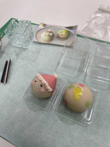 いろを重ねたり夢中になっていました。世界にひとつだけの和菓子ができあがり「かわいい」と笑顔があふれていました。